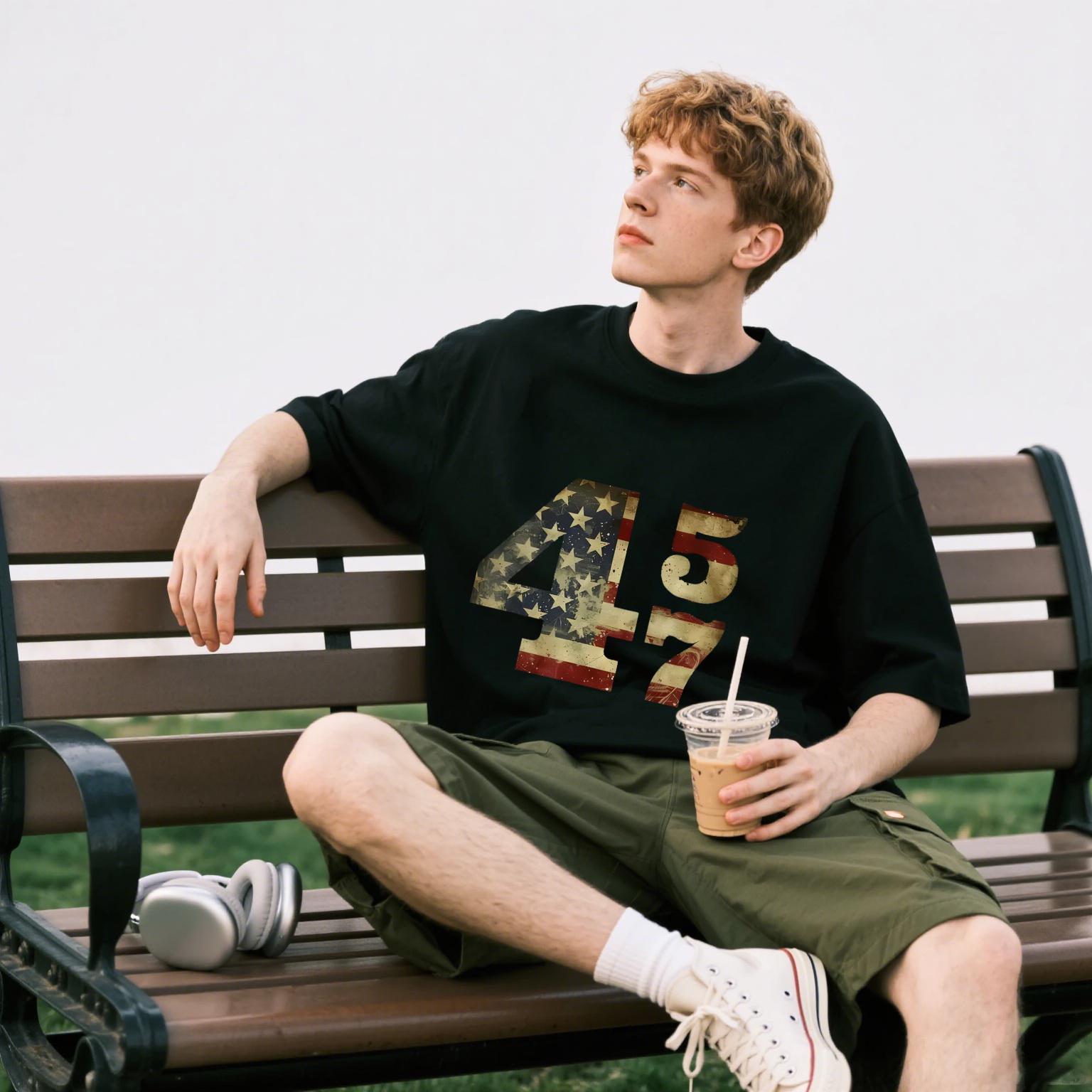 4th of July With American FLag T-Shirt, 100% Cotton, Short Sleeve, Crew Neck, Unisex For Men And Women