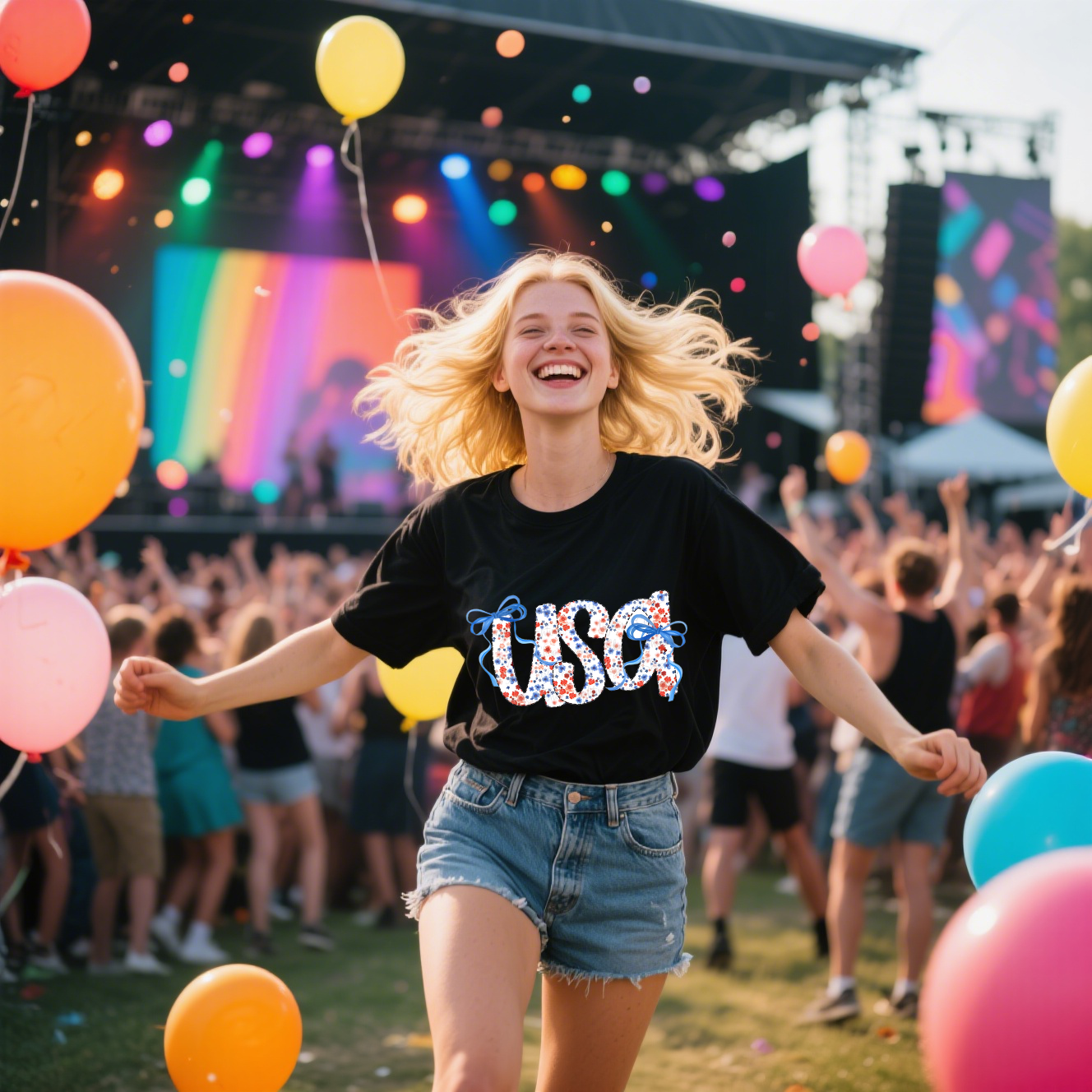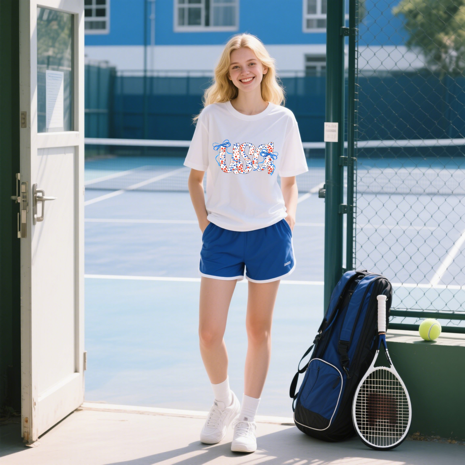 "usa" With Florals And Bows T-Shirt, 100% Cotton, Short Sleeve, Crew Neck, Unisex For Men And Women